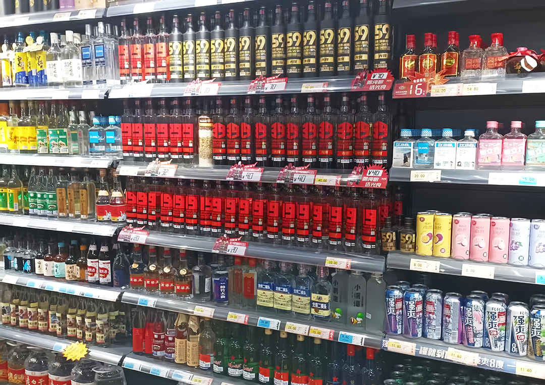 他的超市挨着几条主干道,客流量大,客源覆盖老中青三代,货架上光瓶酒琳琅满目,但真正能持续动销的仍是经过市场检验的产品。他试过不少包装类似主流品牌的新品,可顾客看看后,大多还是选熟悉的款。