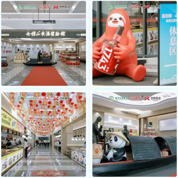 嘉绍黄酒主题驿站以交通为载体,将地方特色产业与高速服务功能深度融合,不仅成为讲述“绍兴黄酒故事”的桥头堡,也为推动区域文化交流与经济联动注入了全新动能。项目自7月5日启动施工,历时2个多月时间完成改造。驿站内开设会稽山黄酒展示馆、黄酒专卖店及黄酒主题餐厅,系统呈现黄酒的历史渊源、酿造工艺与品类特色,打造兼具现代气息与文化底蕴的黄酒主题消费场景。同时,嘉绍黄酒主题驿站优化商业布局,引入五芳斋、小食辰、久久鸭等知名餐饮品牌,丰富司乘人员消费选择;同步升级卫生间功能,增设妈咪暖心小屋、无障碍卫生间等设施,提升特殊群体服务体验;新增42个小车位,配备22个充电桩,强化绿色出行支持;全面铺设污水纳管系统,实现各类废水统一接入市政管网,践行生态环境可持续发展理念。