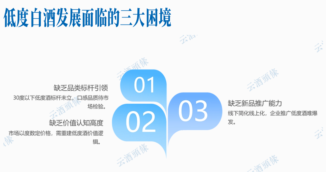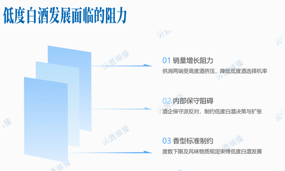 他们会认为这是左手打右手、不合算、不应该的选择,没看清高度酒需求下降低度酒需求上升的大趋势,只想守住高度酒的销量不愿冒险自我革命。其结果会阻碍企业进军低度白酒的决策乃至落地执行,制约市场规模的扩张。