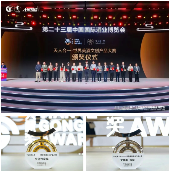 本届酒博会特设的“天人合一·世界美酒文创产品大赛”,引起行业广泛关注,共征集到300余款兼具创意与文化底蕴的文创产品。会稽山的兰亭·大师酒在激烈竞争中脱颖而出,荣获TGA|天人合一——世界美酒文创产品大赛“文创传奇奖”与“文博类银奖”。