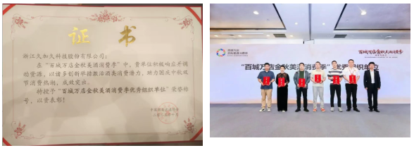 久加久获誉百城万店金秋美酒消费季“优秀组织单位”