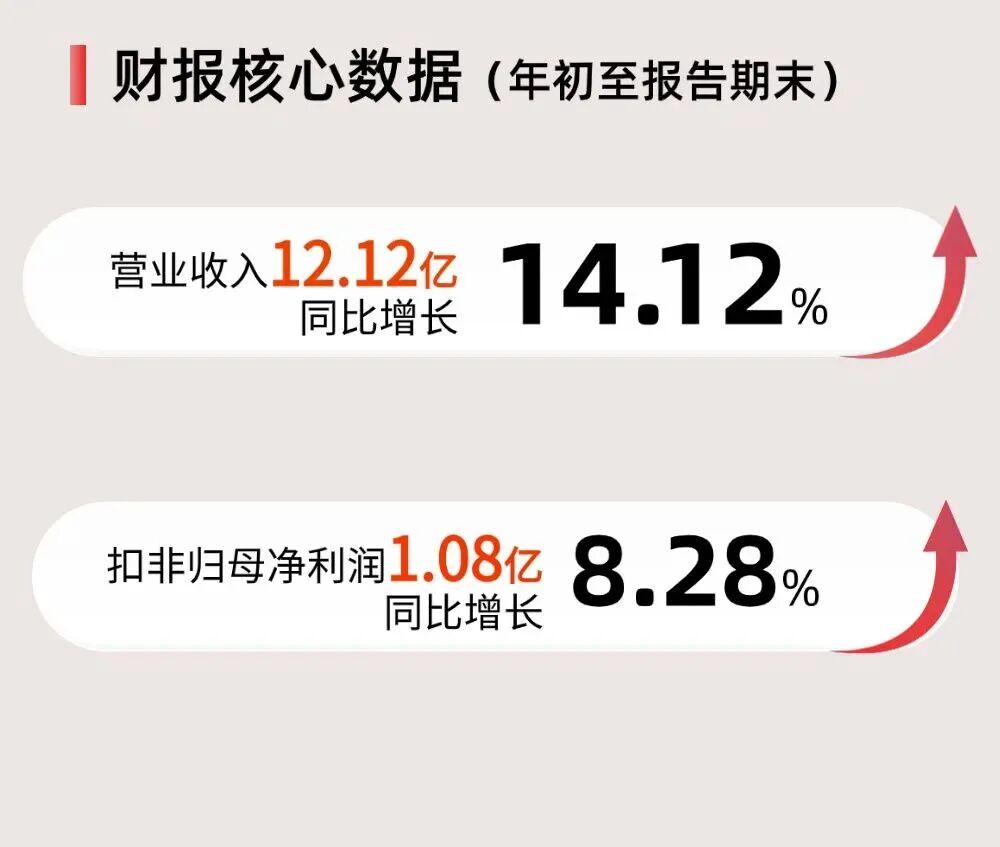 报告显示,公司前三季度营收为12.12亿元,同比增长14.12%;扣非归母净利润为1.08亿元,同比增长8.28%。其中,2025年第三季度营收为3.95亿元,同比增长21.09%。