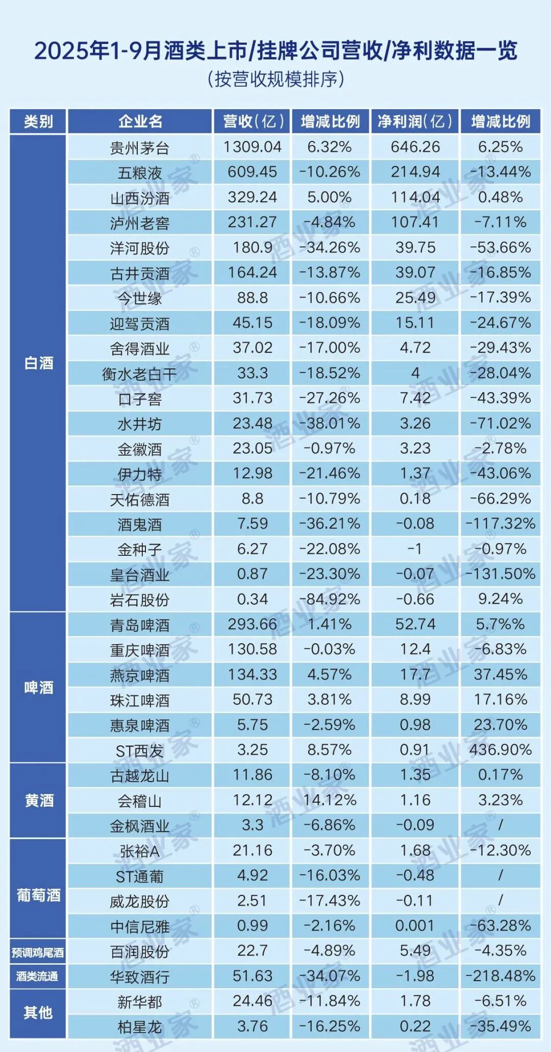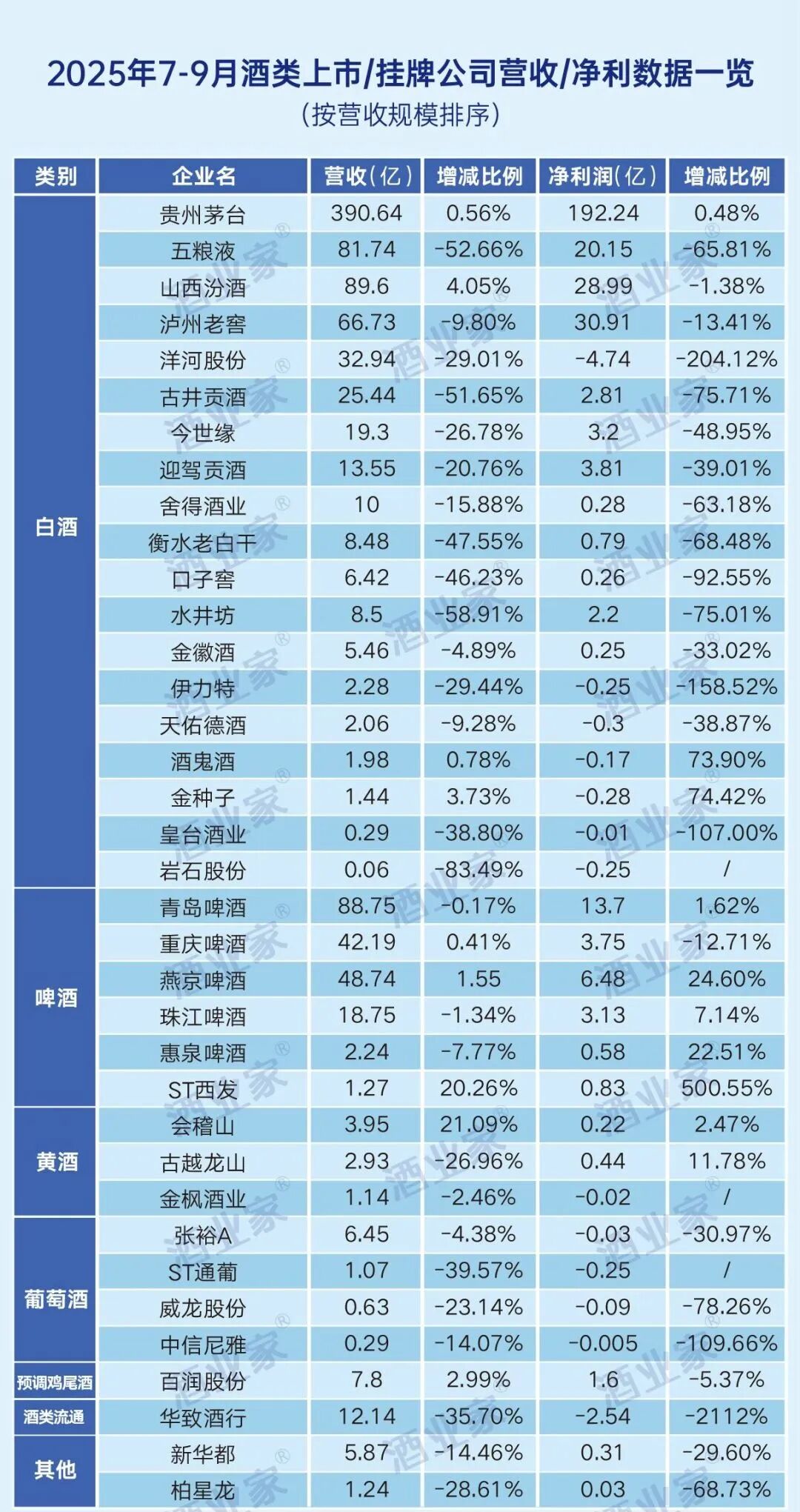 酒类上市公司三季度数据全部出炉,19家白酒上市公司仅2家实现营收增长