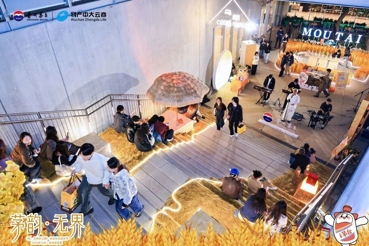 10月29日,由物产中大茅台文化体验馆主办的“茅韵无界”快闪音乐节在杭州城市人文地标——天目里中心圆满落幕。活动以音乐为媒介,融合艺术互动与品牌文化,打造了一场传统酒文化与现代潮流碰撞的沉浸式体验,展现茅台品牌年轻化、时尚化的新面貌。