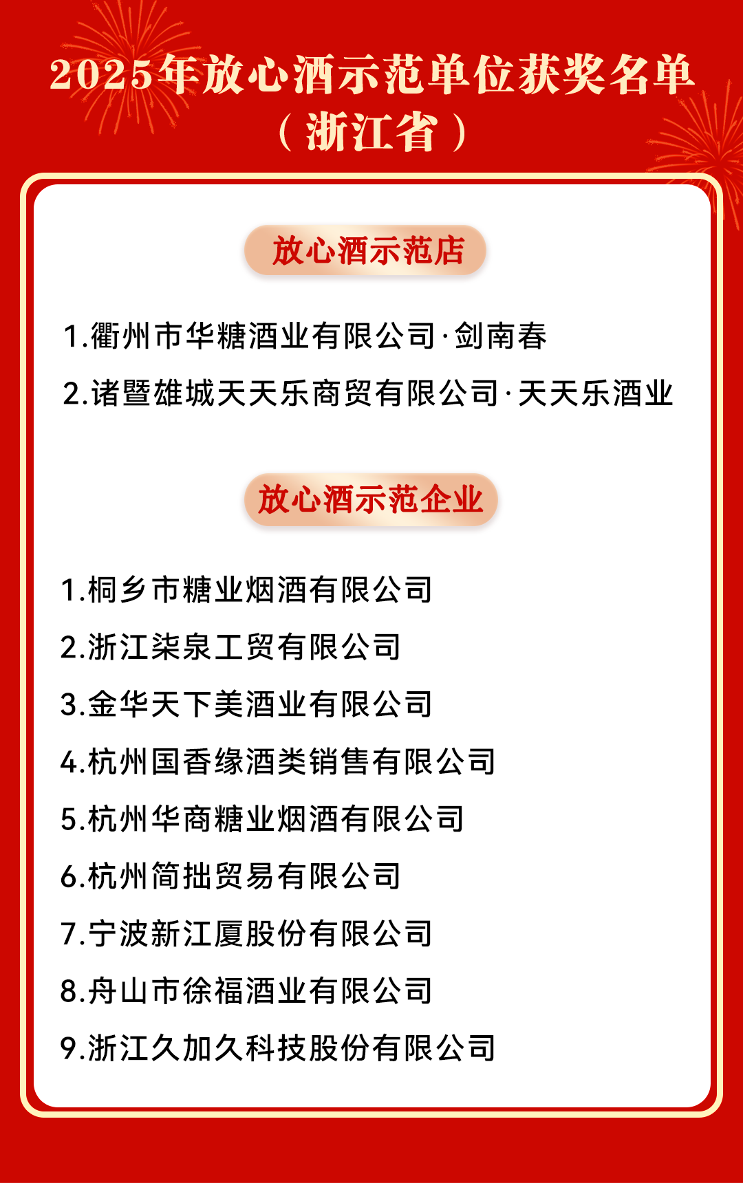 其中,我省11家单位荣获2025年“中国酒类流通协会放心酒示范企业(店)。