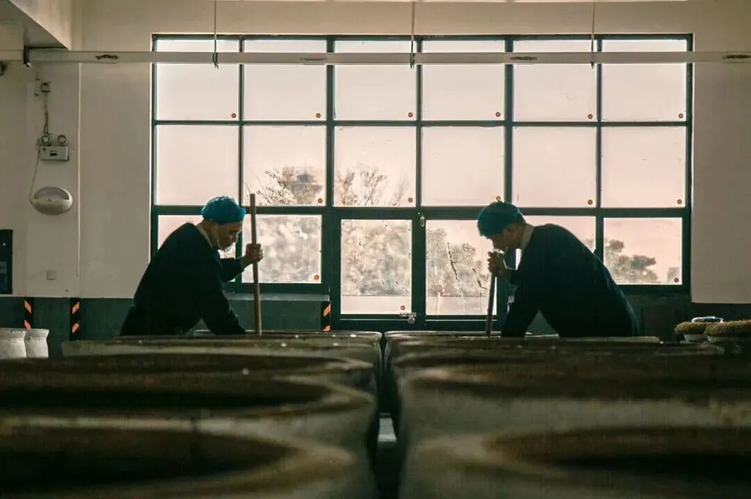 在塔牌的酿造车间,有几十年经验的酿酒师,也有许多年轻酿酒师的身影。他们从18岁开始当学徒,在师傅的带领下,经过三年时间学习才能够开耙,当年轻的心同黄酒一起沉淀下来,黄酒酿造技艺也在传承着。