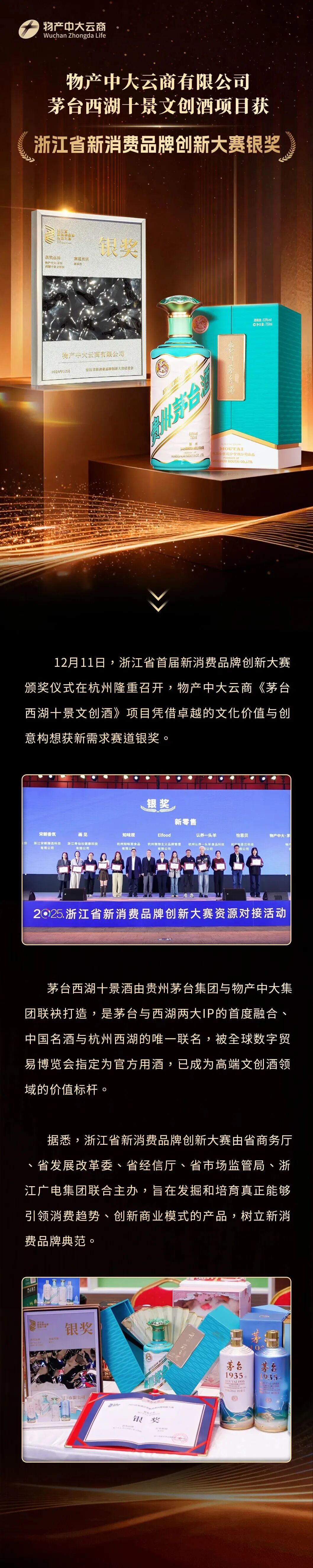 【物产中大云商】喜报!物产中大云商茅台西湖十景文创酒项目获浙江省新消费品牌创新大赛银奖