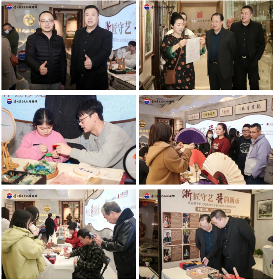 活动邀请到杭州王星记、朱府铜艺、利民、十竹斋、西泠印泥制作技艺传承保护中心、富泉牌、金家虹刺绣、都锦生织锦、邵芝岩笔庄、金华核雕、修内斯、天竺筷、百年盧藝、小明金石篆刻、金竺斋工艺伞、万沐峰1886、喜得宝、云景堂等20余家老字号品牌和省市级知名非遗传承人,现场展示了包括制扇、制笔、制伞、刺绣、核雕、金石篆刻、印泥制作、木雕等在内的多项非物质文化遗产成品及工艺过程。