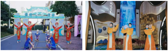 步入浙江金华茅台文化体验馆,浓厚的文化气息扑面而来。主题门头以“匠心守心”为内核设计,巧妙融合了传统东方美学与现代展陈语言。节奏明快“茅台迎宾舞”的竹竿敲击声,搭配轻盈舞步,演绎出茅台人欢庆丰收、致敬传统的生动场景,让嘉宾在视听盛宴中感受到茅台文化中欢庆、团结、向上的精神内涵。